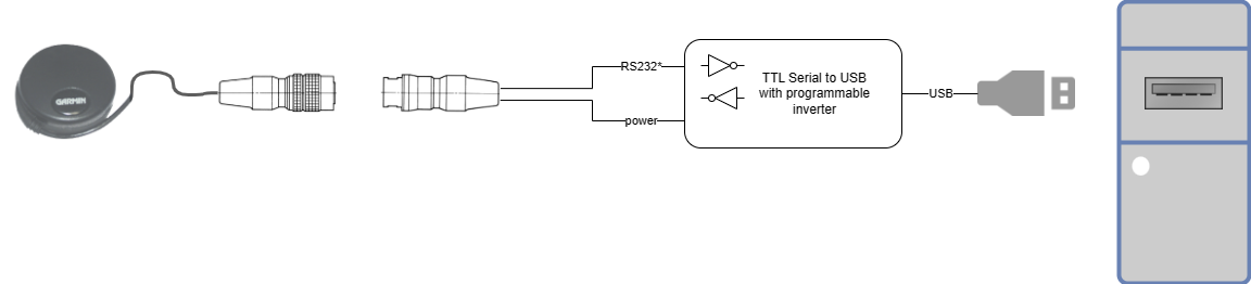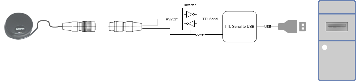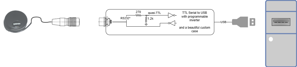 Unfortunately, this compromises our goal of making the solution easy to build and low in parts cost. After all, why design an adapter that costs almost as much as the actual GPS unit we’re trying to program?! So we’ll forgo this design.