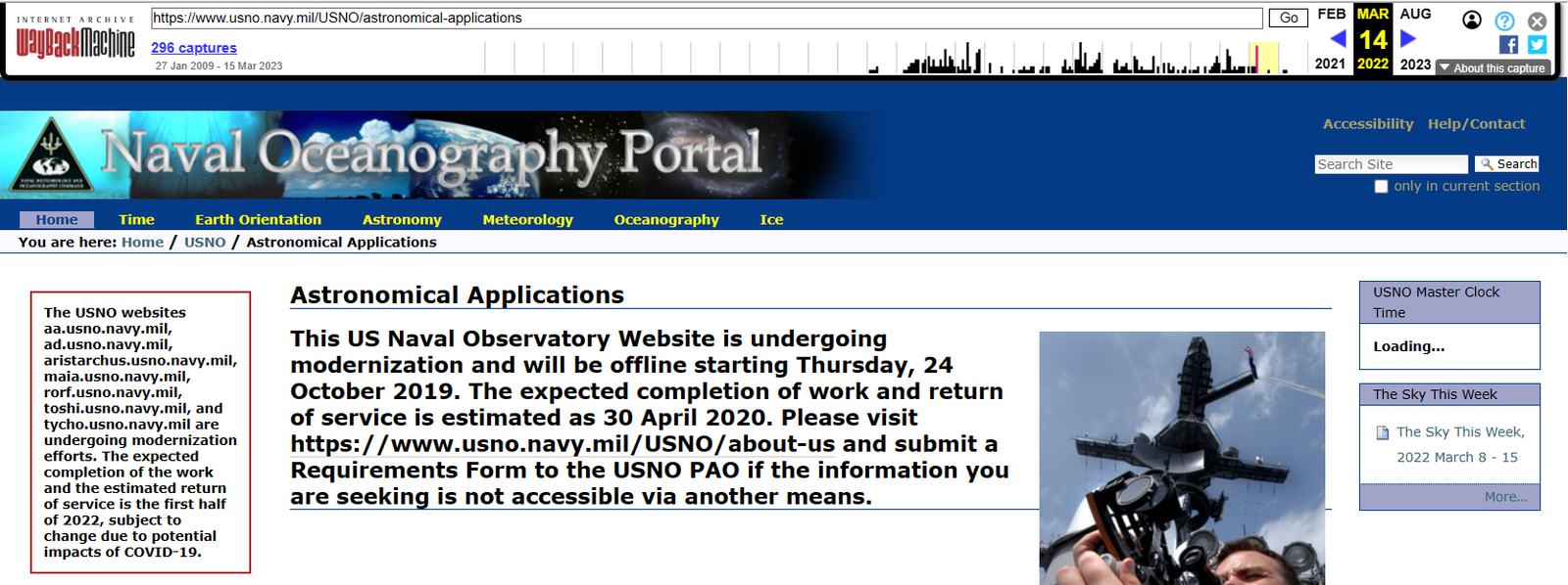 But then… the unfathomable fathomed. The COVID-19 pandemic struck. The USNO site modernisation was completely halted – very likely deprioritised in the midst of indiscriminate illness, clinical chaos, and staff shortages.